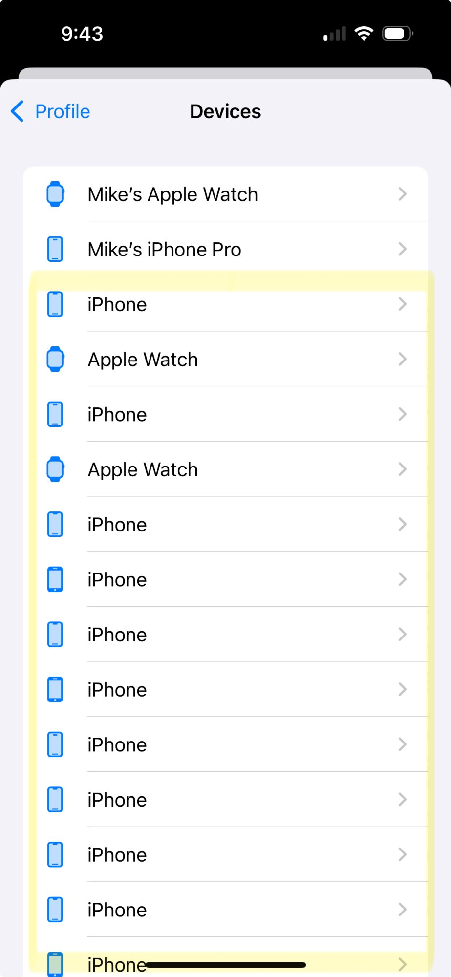 I'm seeing a bunch of unnamed devices under Health. I usually only see the top 2. I can't delete them and there's no data from any of them.