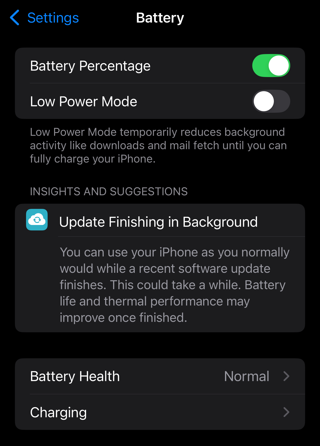 When the Device is heating up and the battery % starts dropping off a cliff, this message is aways battery settings! It comes and goes multiple times since installing last beta.