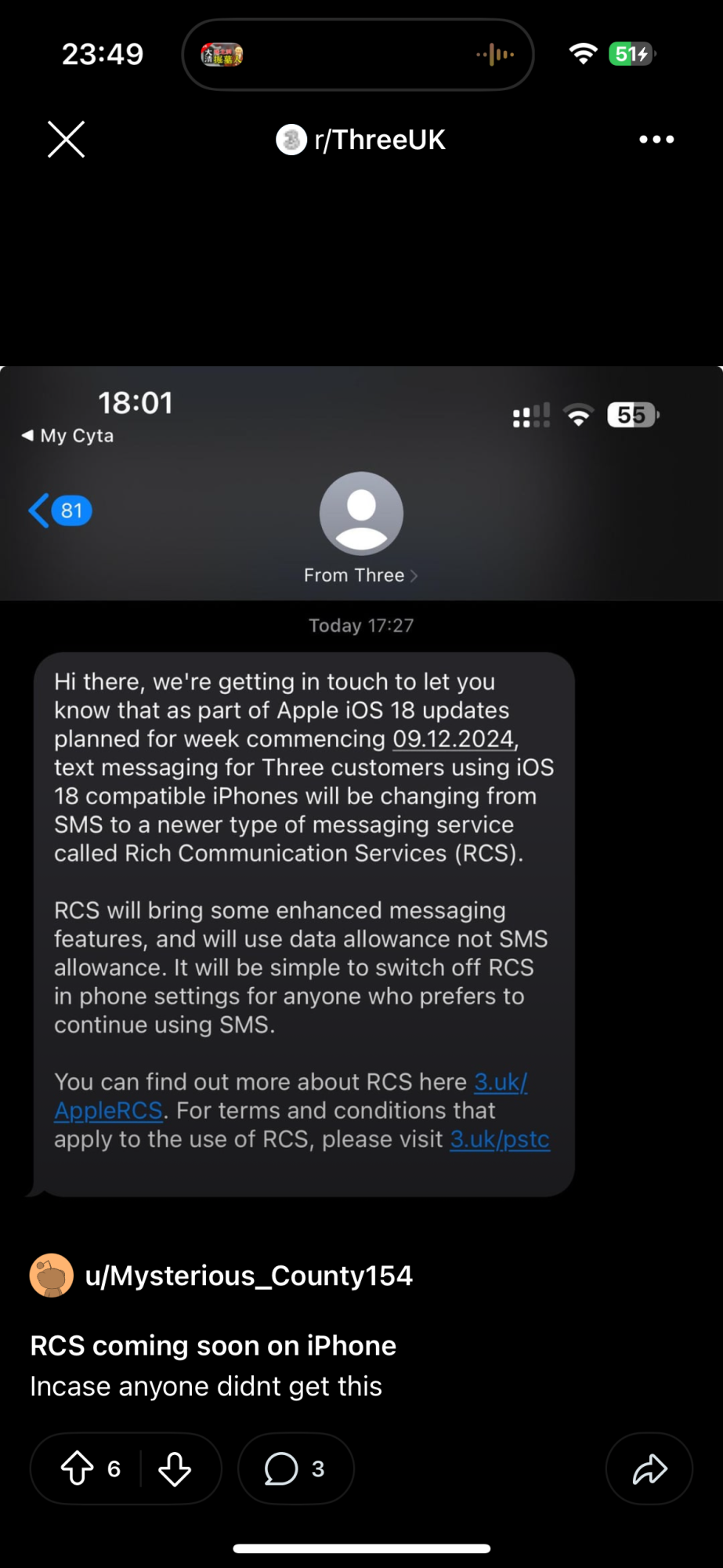 RCS support can be added without iOS updates by OTA carrier profile updates (that‘s what Vodafone.de did).Saw this on Reddit: https://www.reddit.com/r/ThreeUK/s/Dr6BfL1olS View attachment 2458223