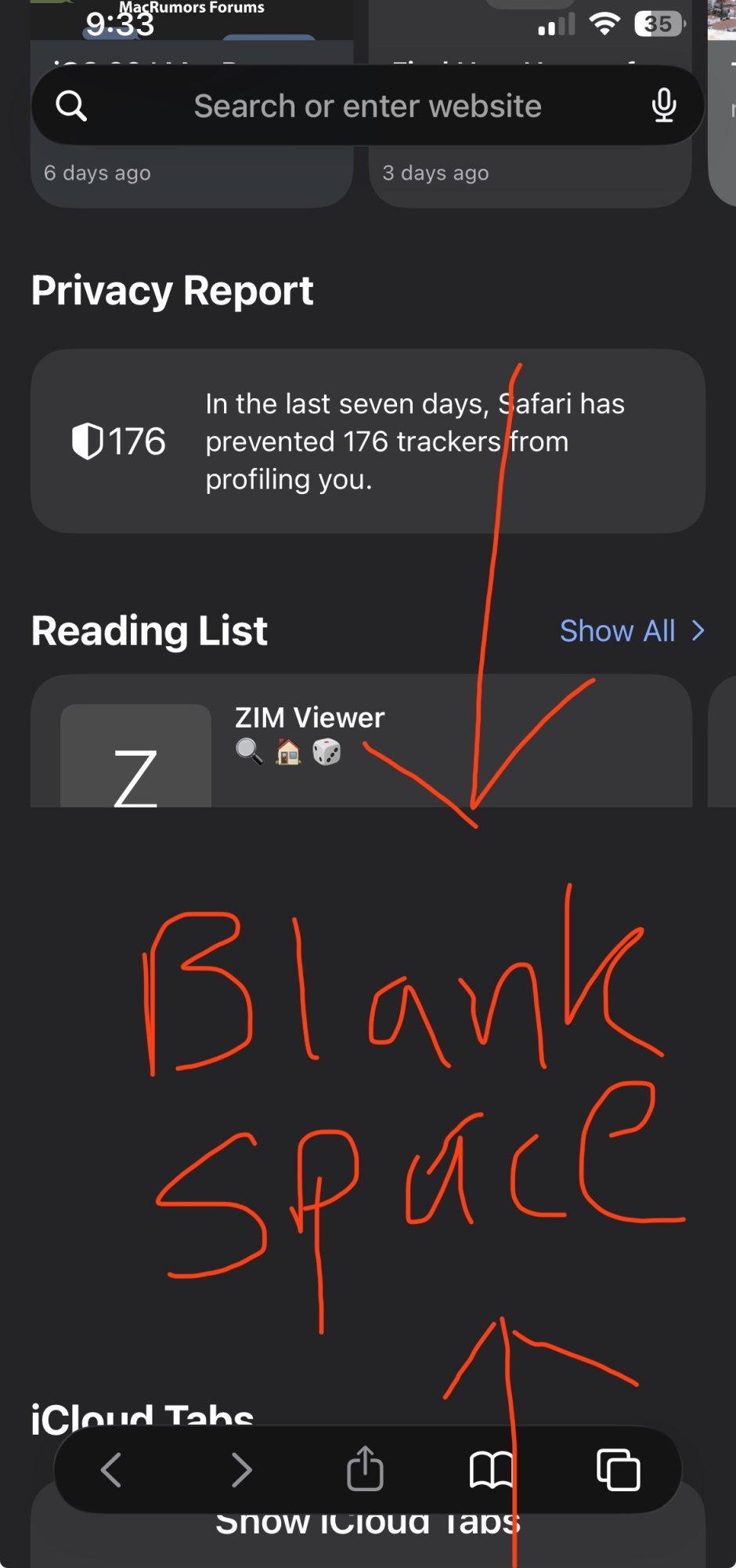 So annoying with safari this blank space on web pages. It’s also on Firefox. Makes web browsing many pages nearly impossible. If you scroll all the way to the top or bottom of a web page, the blank spots go away. See pics. Started in 26.0.2.