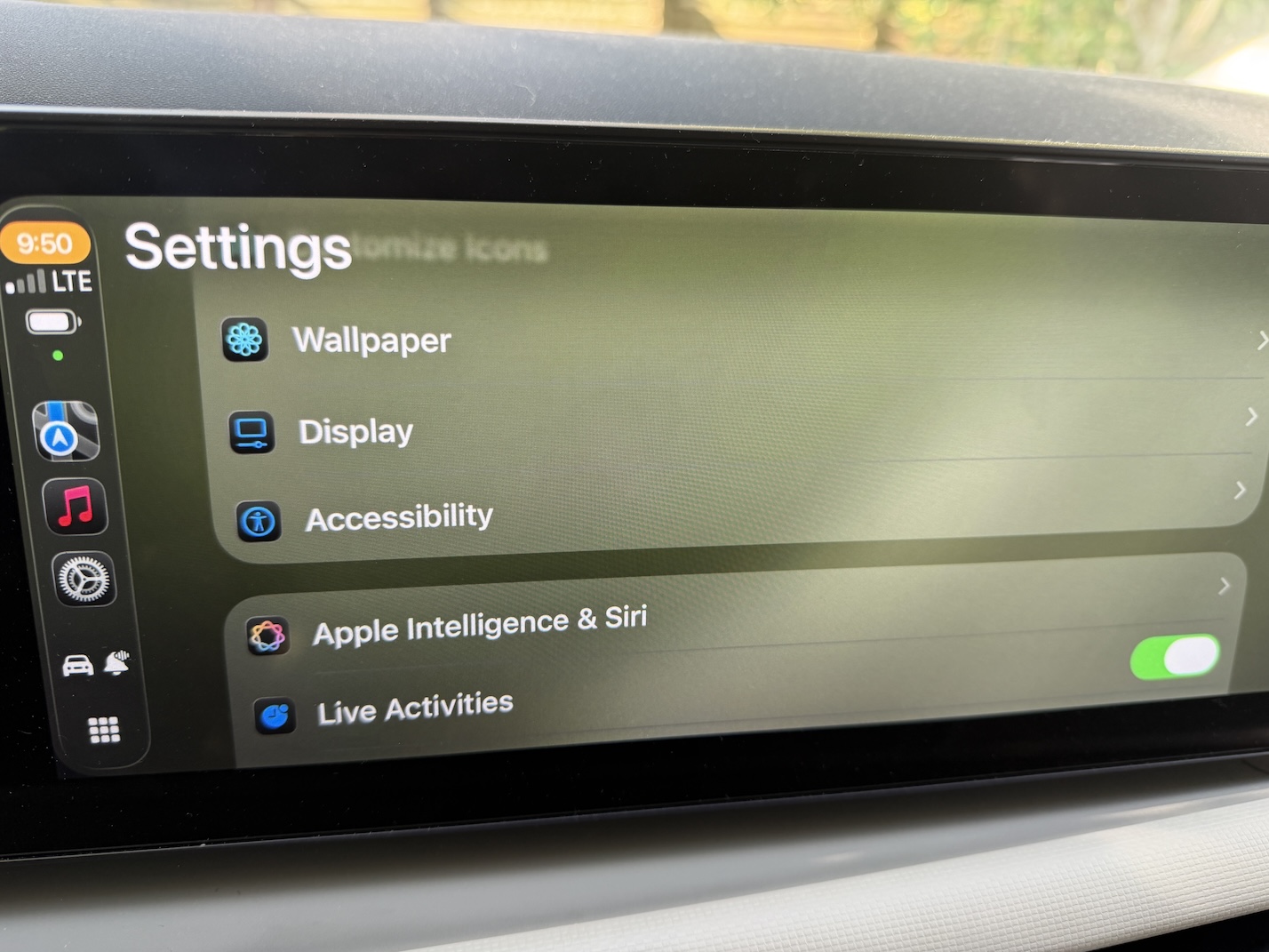 yes, but there is a 2nd settings app in CarPlay itself...its in there.