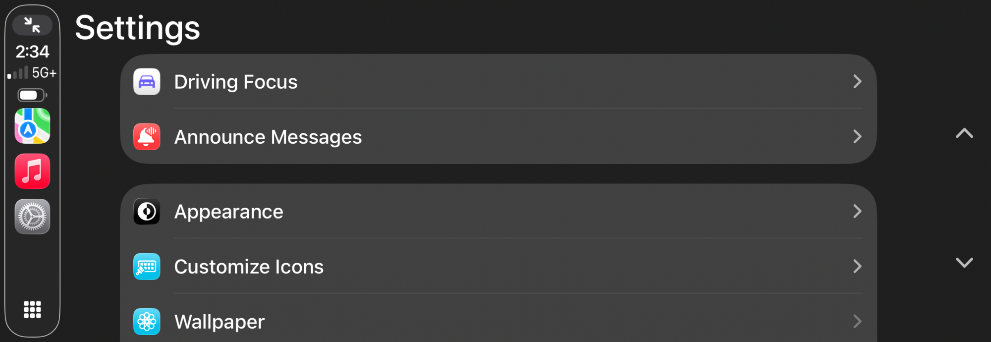 Clearly there are differences. I've attached the relevant screenshots from my CarPlay settings. Not sure if it's a limitation with Ford's SYNC4 implementation or what, but I do not have the same sub-options. Curious what vehicle you are driving/referencing.