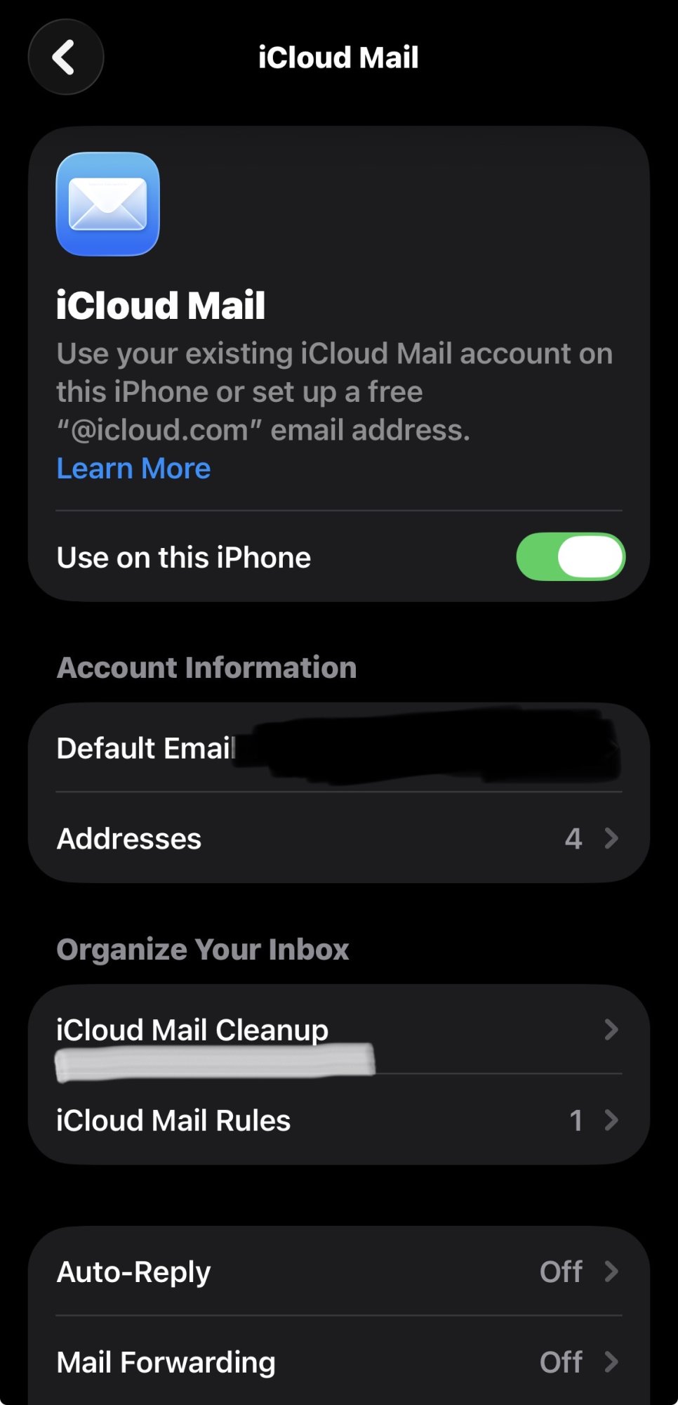 Apple account -> iCloud -> Mail.Where is that located? Thanks.