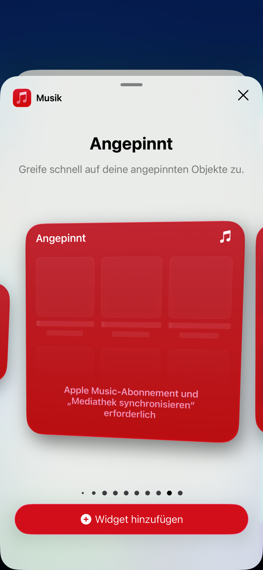 looked up for the widget that shows the pinned music: it says it needs Apple Music subscription and synchronize set to be on