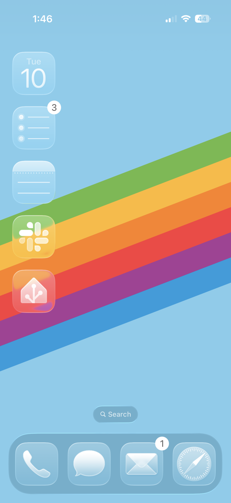 And use cases like the control center are where this new style falls apart. The white control center icons/sliders lose their edge contrast against white backgrounds. Also the background color refraction effect seems a little heavy handed:Here’s one of my home screens! I’m really excited about the clear glass icons and light mode tinted icons. I always was sad that iOS 18 only allowed dark tinted icons. This update feels so much more “me” so far.