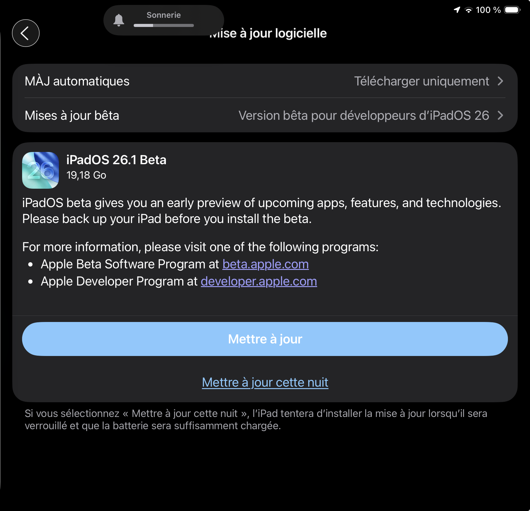 Bruh my status bar keeps disappearing on the Software Update screen because of the lingering dark/light appearance bug (one can tell because back button is light)…really hope that’s fixed in .1 beta 1