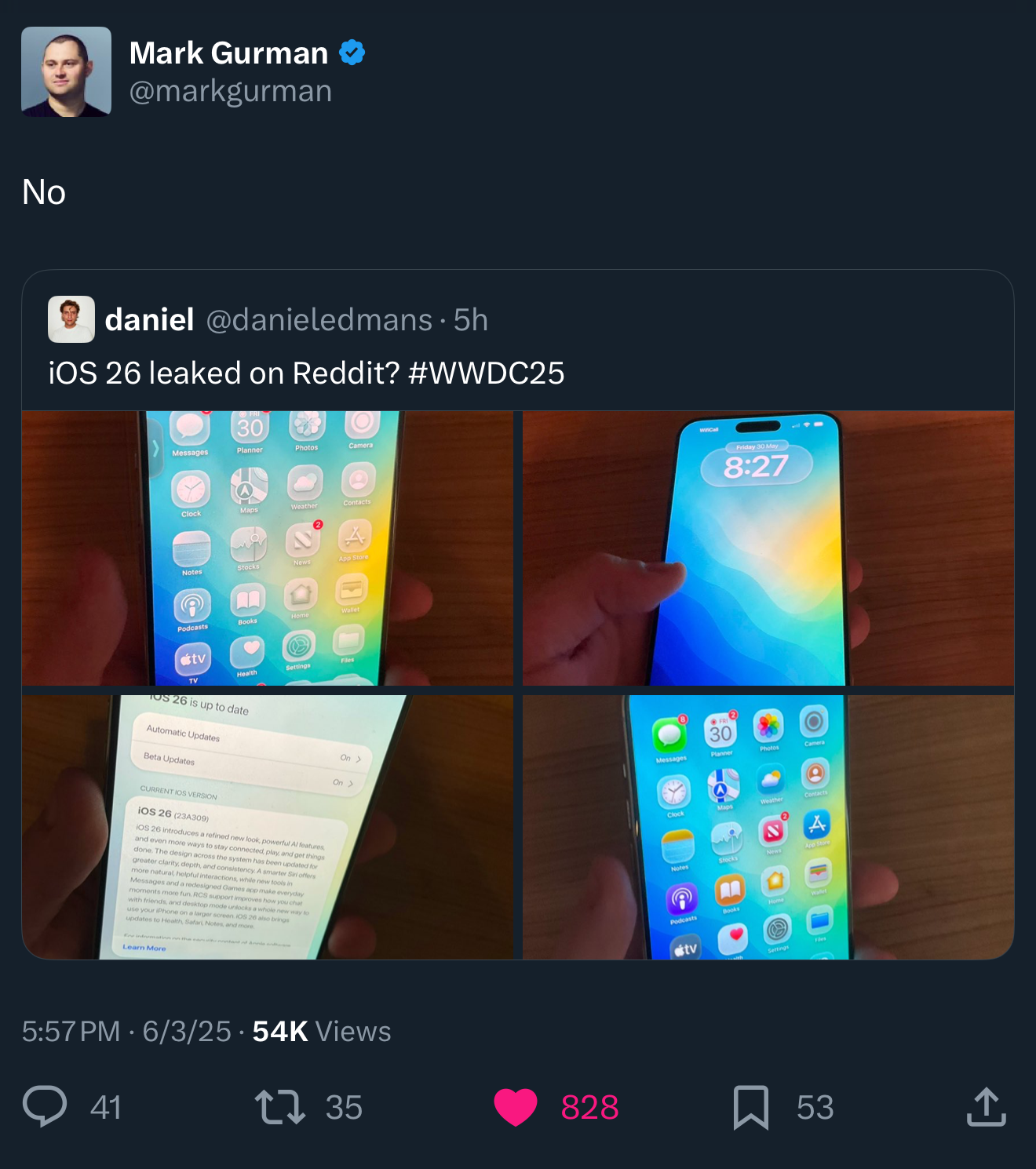 Ok, I get that for very specific and detailed info, but how would, for example, even just saying something as simple as “the app icons will be squircle shaped, or “the app icons will be round” get anyone fired? Presumably, a decent number of people in Apple have seen the icons, I don’t think this would out his sources at all. It clearly doesn’t seem to have outed Prossers’ sources. At some point, it just comes across like Gurman is being intentionally vague so that nobody can say he’s wrong.