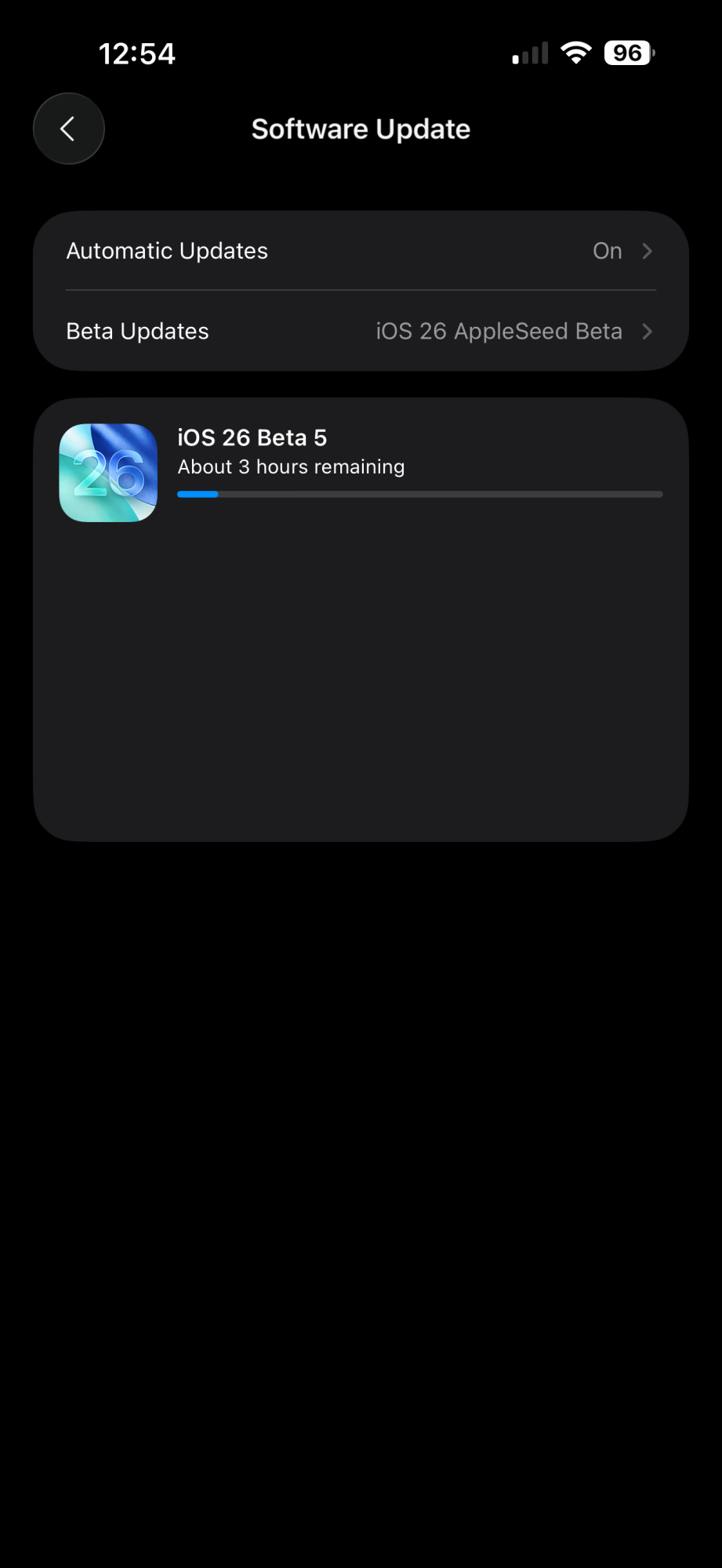 Since everyone was arguing about how long it takes to install, I thought I’d document mine. iPhone 16 Pro, coming from beta 4 to beta 5, OTA update via cellular. I started the process at 1:24 pm.