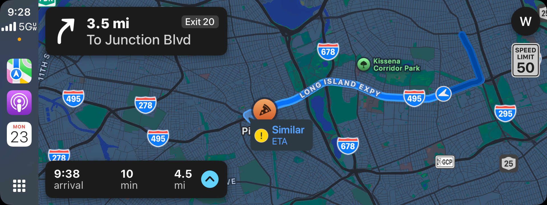 Then, when the navigation box updates back to your exit, it now removes the exit number from the upper right, and adds in “Next Exit” at the bottom.