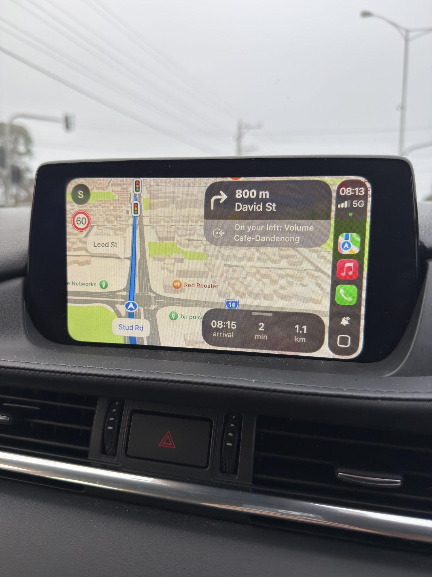 In Apple Maps on CarPlay, you have very clear directions at the top right, but the second lower set of directions they've changed the background to light grey, so you've got white text on light grey and it's much much harder to read.