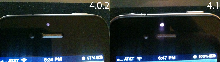 I just did a call in a pitch dark room, No light showing on mine. And yes I updated to 4.1.