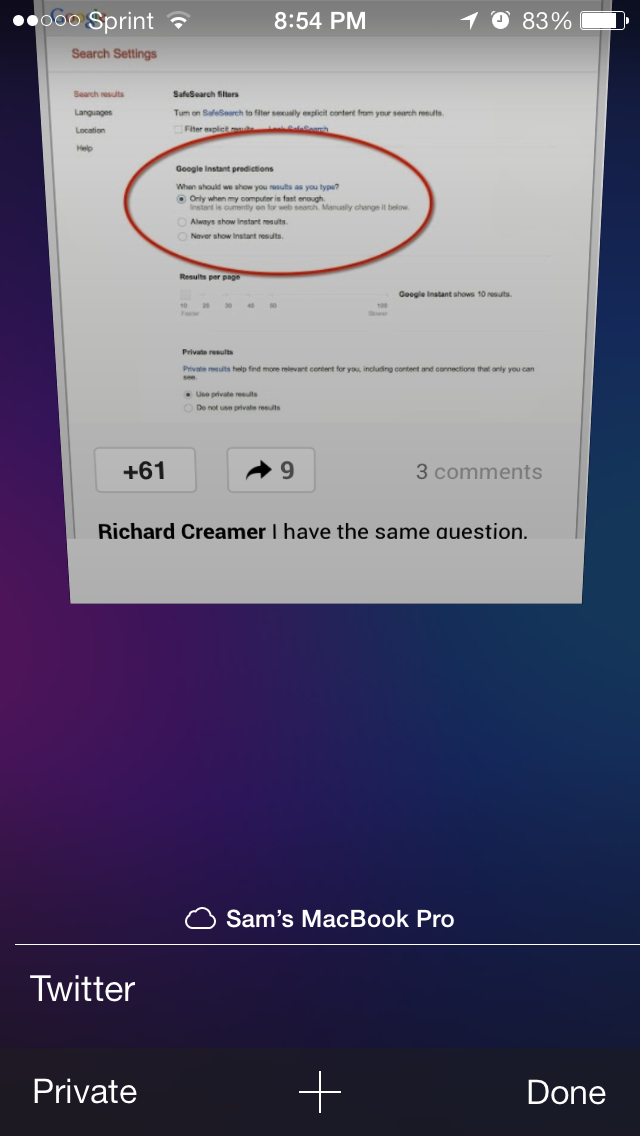 Just noticed this when you swipe down in Safari when opening a tab you see your iCloud Tabs. Maybe its not new but yeah