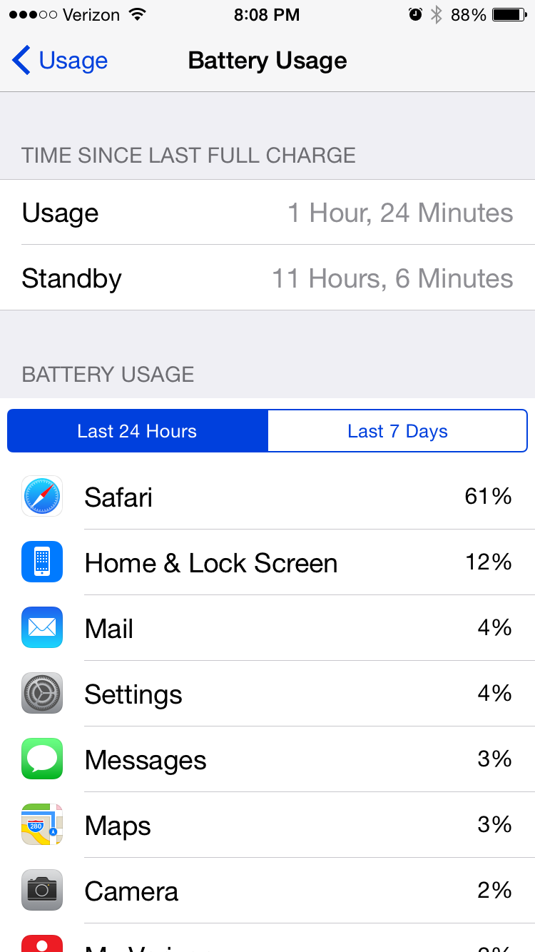 Really? You think I am that stupid that I dont know what phone I have? Have never had 5, 5c or 5s. Went direct from 4s to 6. Not that I have to prove anything to you but to make you look like a dumb A** for calling someone a liar before doing research on what you are talking about. Here is a new screenshot NOT in zoom mode with battery stats. So maybe next time you need to listen to yourself before calling someone a liar. Besides what does ANY of this have to do with battery life that was being discussed? Is this sufficient or do I need to send you my MEID or maybe a camera photo of my iP6 with the battery status on the screen? Please take note of the 2nd screenshot (back in zoom mode and 640x1136 as I stated in earlier post as to WHY resolution was 640x1136), clearly showing Phone 6 and iOS 8.1.3 if you think that zoom mode does not have this effect.