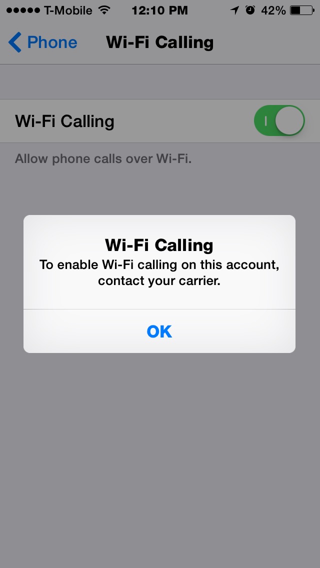 Here is picture proof of wifi calling working on my iPhone 5c.