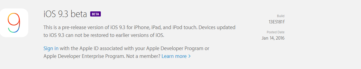 I'm seeing it. I have the iOS 9.3 beta profile installed though (which is something different than the public beta profile).OTA for people running 13E5181d? Not seeing it so far.