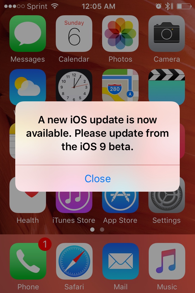 I just got the alert at 12:02 EST Sunday September 6 on my iPhone 6 and iPad Air 2.