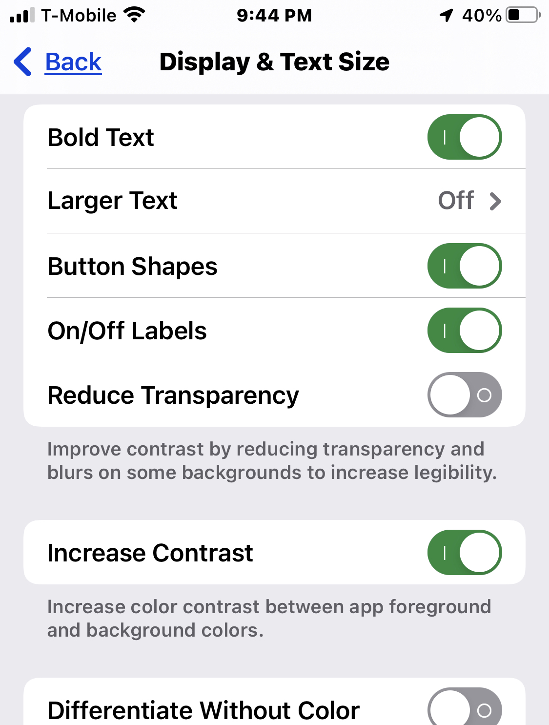 I’ve enabled that since day 1, when Apple shoved those settings under “Accessibility,” as if those accommodations were suddenly considered “above and beyond” by Apple.