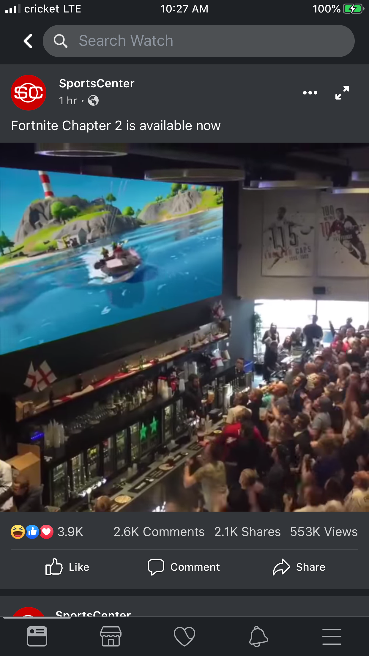 Hello everyone, i woke up this lovely morning and starting checking my social media pages and when I check Facebook I came across a video from sport center about the Fortnite update.