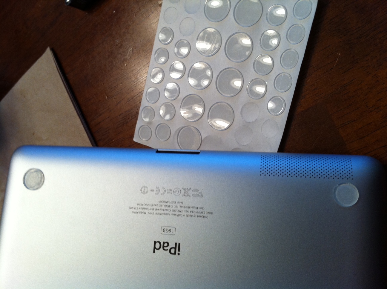 I didn't like setting the bare aluminum back laying on a table, and I looked at my 13" MacBook Pro and said to myself, "Why doesn't the iPad have feet like this does?"