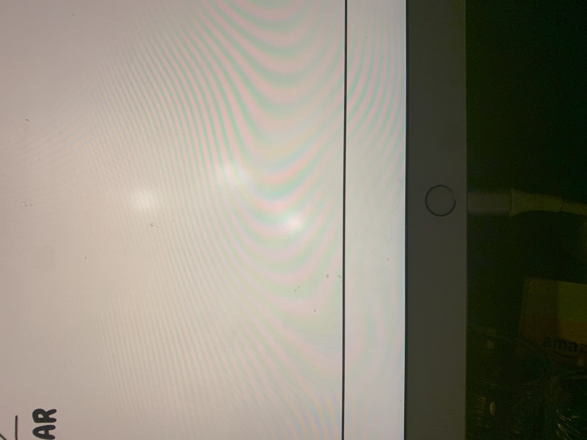 As per usual only visible against white background. Caused by attachment points I’ve read on fixit . No acknowledgement of problem but seems like non laminated iPad is only safe option . Or do new iPad Pro’s not have this issue ? I just want a big screen and gd speakers so a 12.9 pro is enticing but I’m scared of this happening again