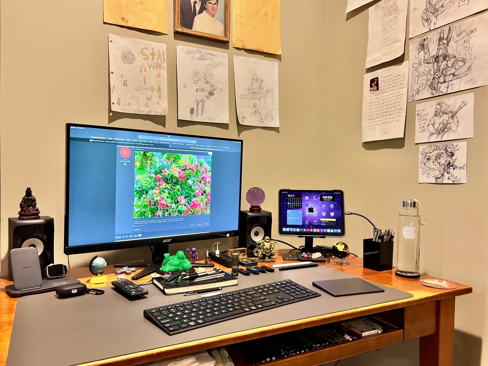 @Beefbowl Here's a different shot of my very functional iPad Pro desktop setup, and a clearer one of my very functional mobile setup. I just love having such a flexible device that fills my work, travel, and fun entertainment needs.