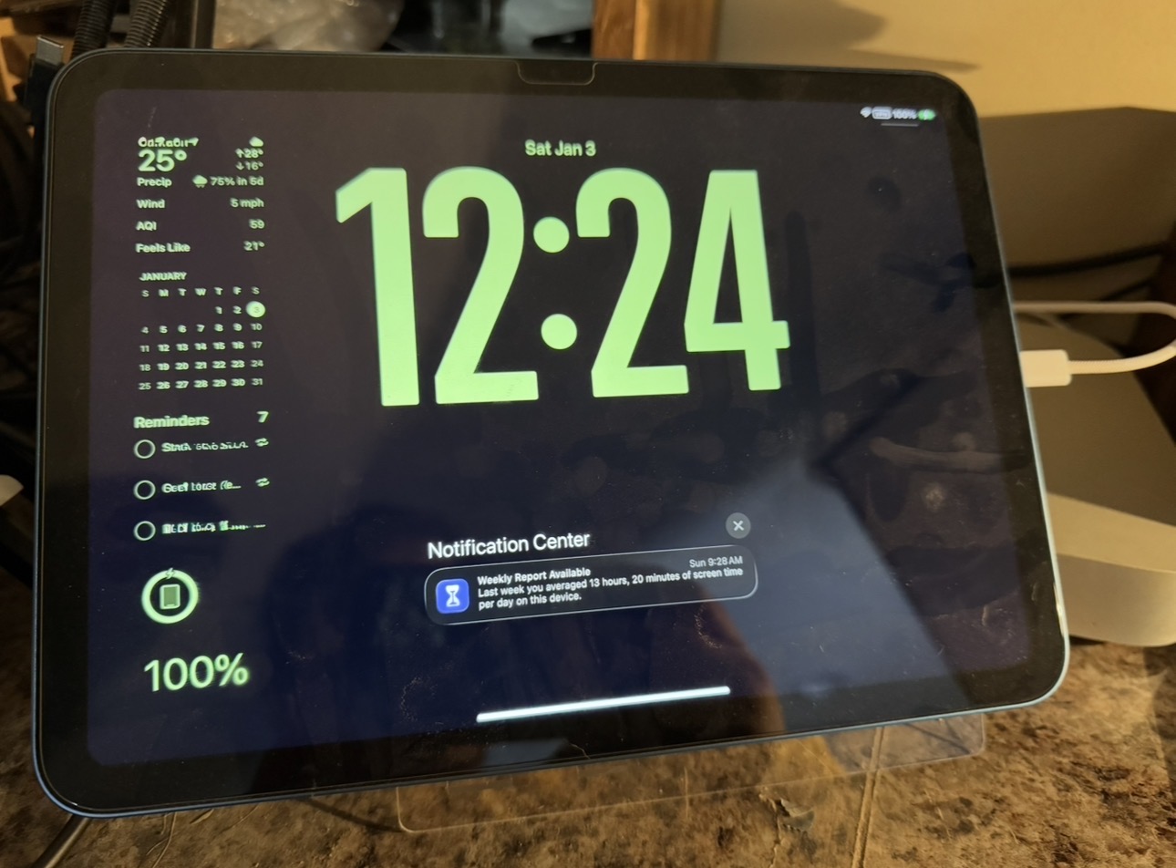 PS, also featured, my latest experiment with StandBy Mode for iPad, aka, the Notification Center, and screen auto-lock setting set to never. I’m really liking this setup as a smart display. 👍🏻
