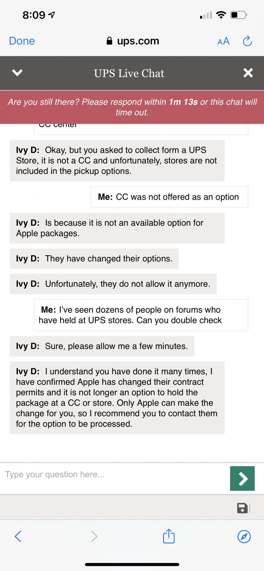 Anyone else have problems having iPad held at UPS store. UPS is telling me Apple no longer allows itView attachment 1777497