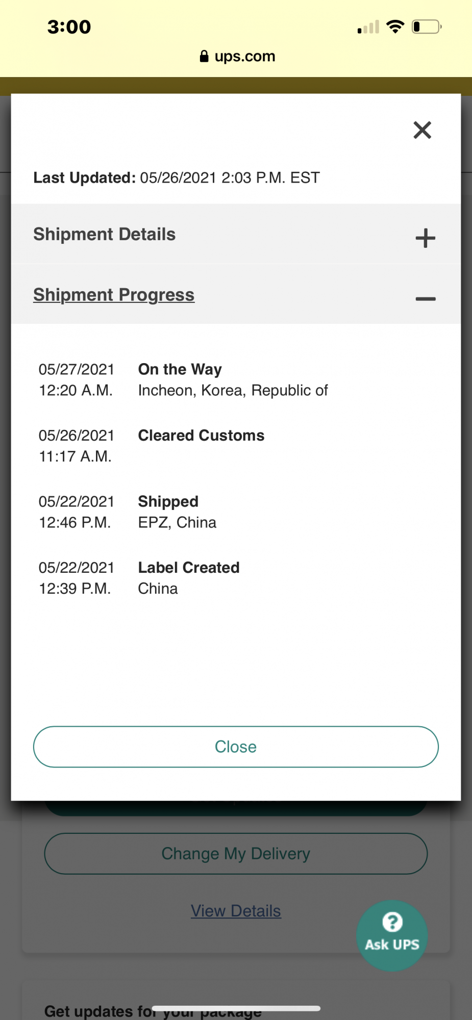 It looks like we’re on the same flight.Well so much for the missed scans theory. Thanks for nothing UPS.