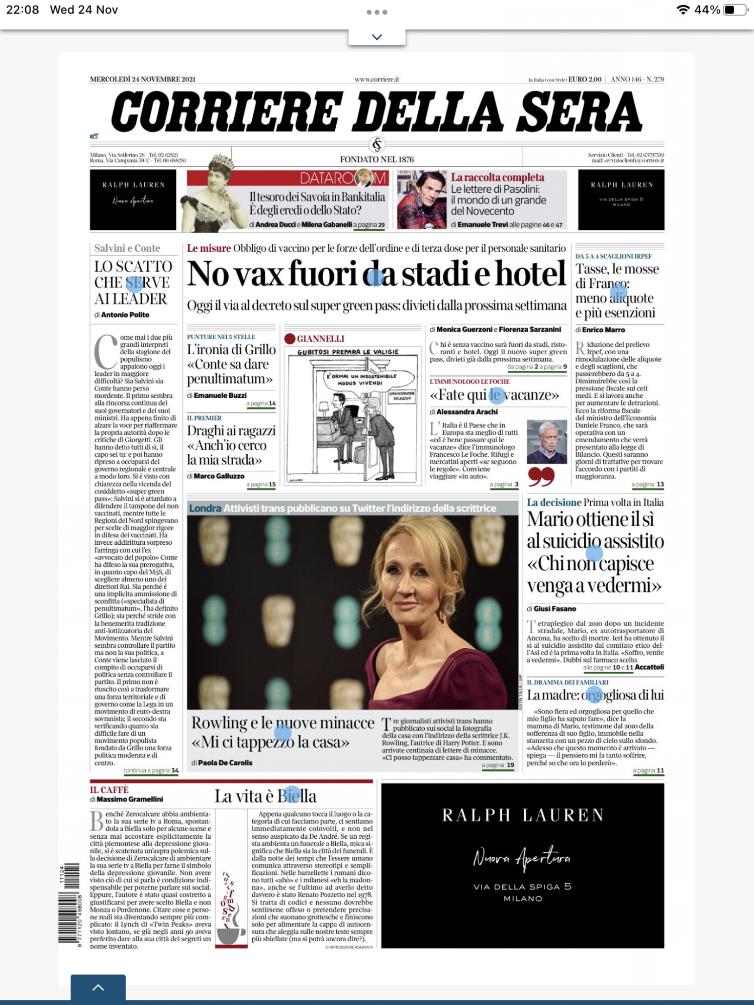 I have been going back and forth for years now, alternating between reading my newspaper on my iPad and on the physical print edition. I still cannot choose which I prefer? Reading on the iPad looks much better but passing back and forth with a physical paper is so much easier. Then there's the cost, the digital editions being much cheaper. I have got into the habit of buying a paper when on my daily walk. It just seems to be part of the walk, to buy something, to go to a shop and a paper is the most obvious daily "treat". But then, always having news content on a digital device is pretty nice....