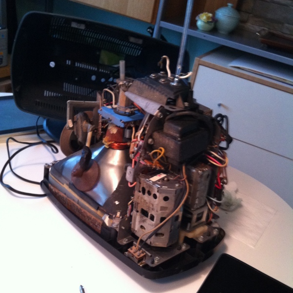 STEP 3. DISMANTLE. With great patience and care I disassembled the components. At this point in time, I knew enough of my non-existent plan to know that I wanted to preserve every dial, knob, and anything else that would be visible on the exterior. That included the power cord. The chassis was surprisingly modular and so I was able to isolate and preserve the back frame of the chassis as a support for the rear adjustment knobs. All pieces were gently cleaned to remove decades worth of grime and dust.