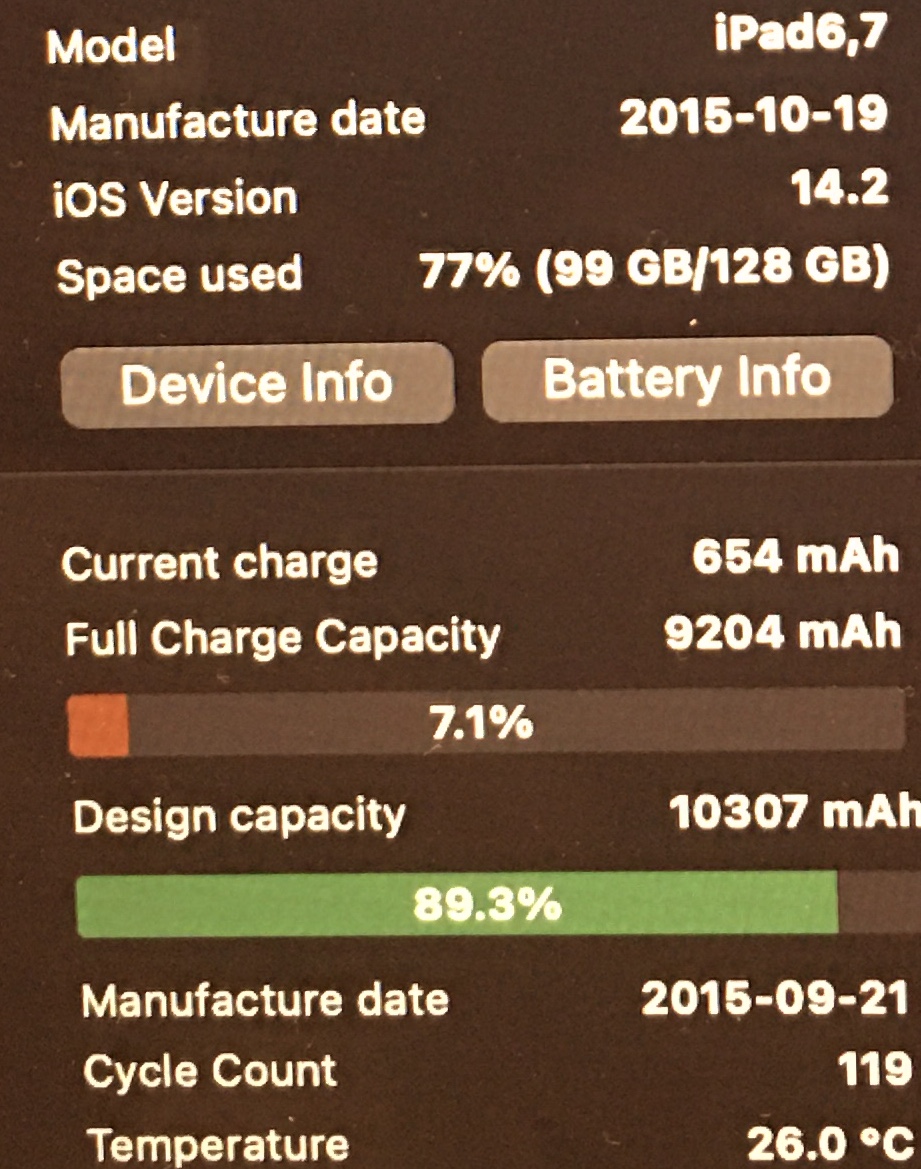 coconut battery showed me capacity of 90% and that my battery has roughly 120 cycles which is expected since I have not used my iPad very much all these years.