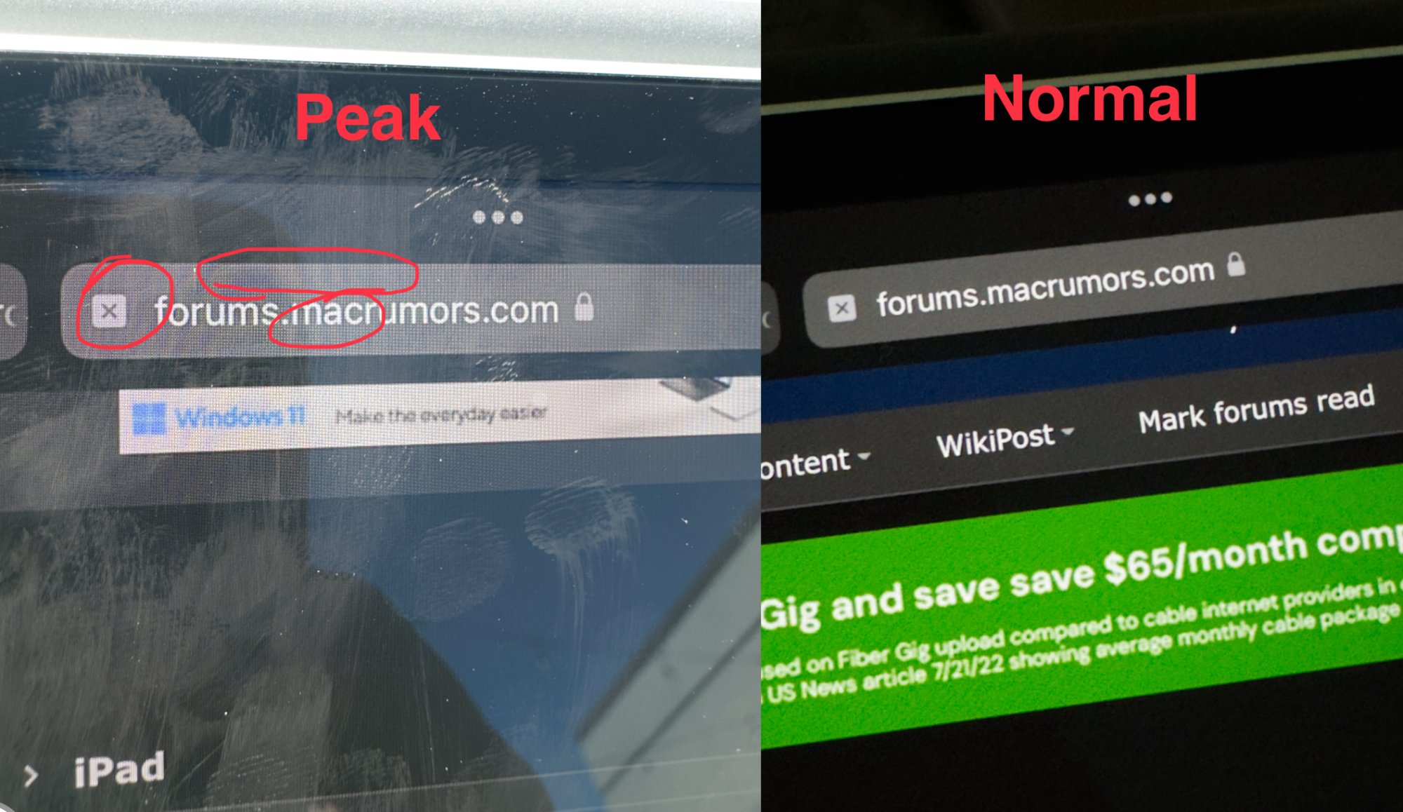 I was using my 11in iPad Pro M4 in direct sunlight today and noticed that the picture looked oddly sharpened. This was especially apparent when viewing photos in the photos app but other UI elements appeared to have overly crisp edges like most HDTVs as well. What’s more is I noticed that if you turn auto-brightness off in the settings, it’s impossible to set the brightness as high as the peak brightness when it’s turned on.