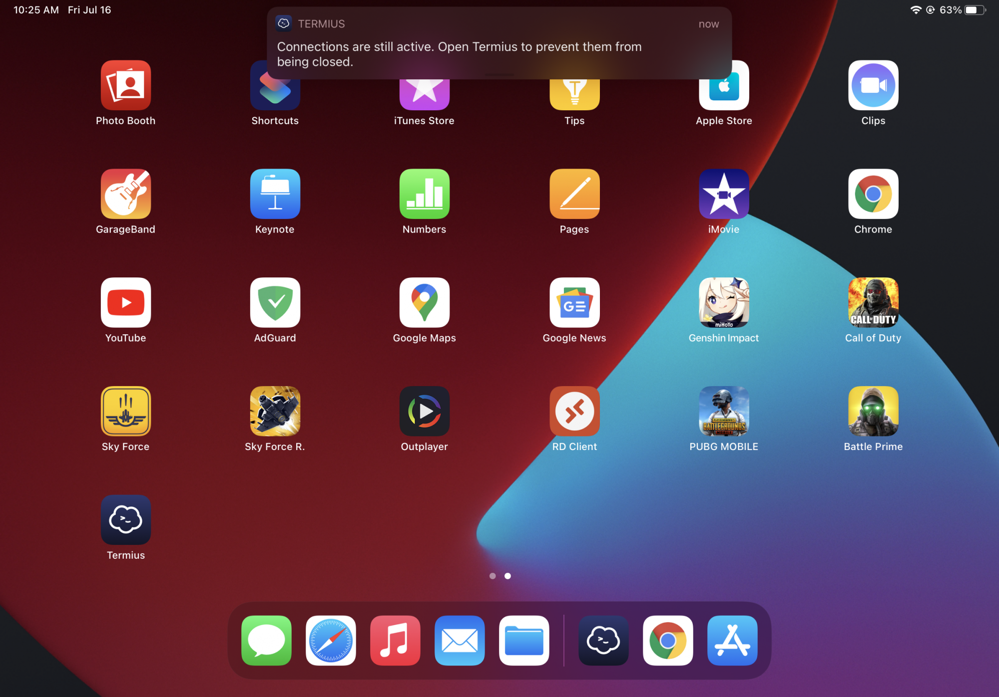 You can get around this by allowing Termius to access your location. Those background services are allowed to run indefinitely.13+ means anything since 13 and higher has been gimped with 30 sec background multitasking. I'm on the latest 14.6 with Termius which warns at ~20 sec with notification enabled then iPadOS kills it at ~30 secs.