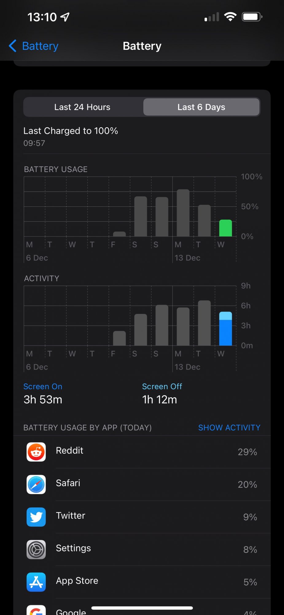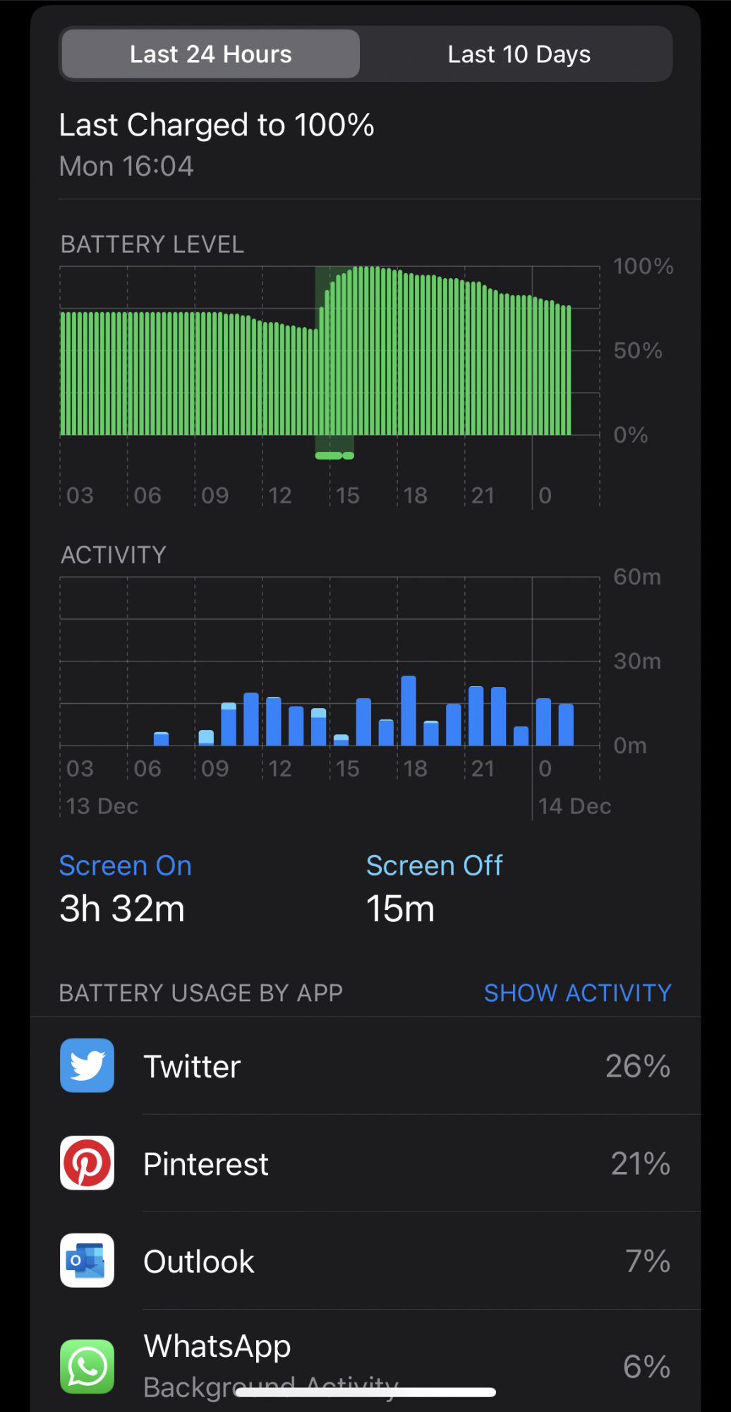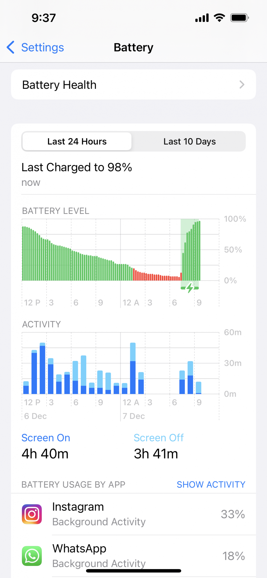 I got my Iphone 13 Pro on 20th November, the battery performance is not as I had heard and seen in the review. Ive been trying to be very conservative in my usage, with Instagram being the most used app. The background app usages are very high. Turned background Refresh off for Instagram and WhatsApp today, will wait to see results ahead. Also i had heard that there literally no/Minimal battery discharge if left unused overnight, but the story here is completely different, it trained 14% overnight.
