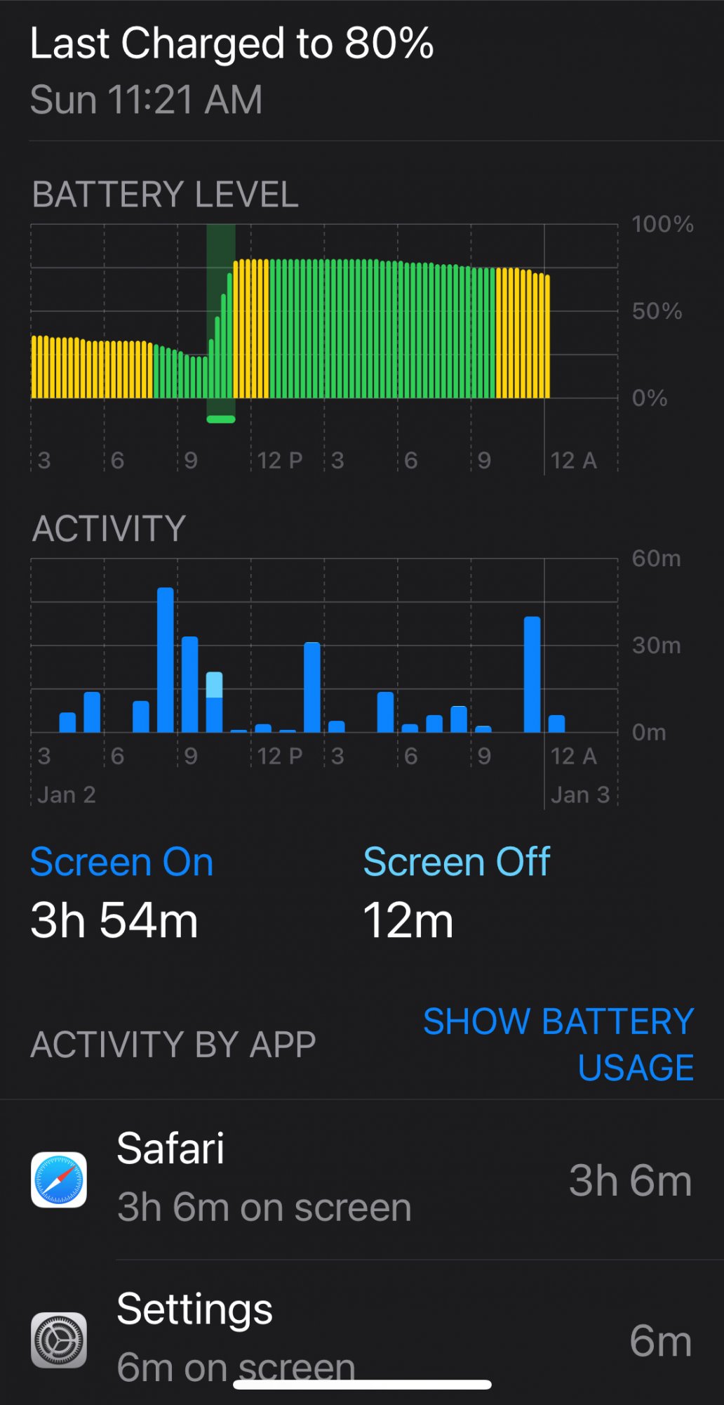 Turns out it does include the charging time. I just made note of the Screen On time and used it with the charger connected. It did go up. Pretty dumb implementation I’d say.I think that the battery usage always includes the time that the phone is being charged. I will use the battery usage that @cambookpro posted, I am including it below. Take a look at the area marked as charging. If you select one of the bars it will show you all the apps that were being used as "BATTERY USAGE BY APPS". I don't think iOS is distinguishing between battery or charging. That is what leads me to think the same about the 10 day battery usage.