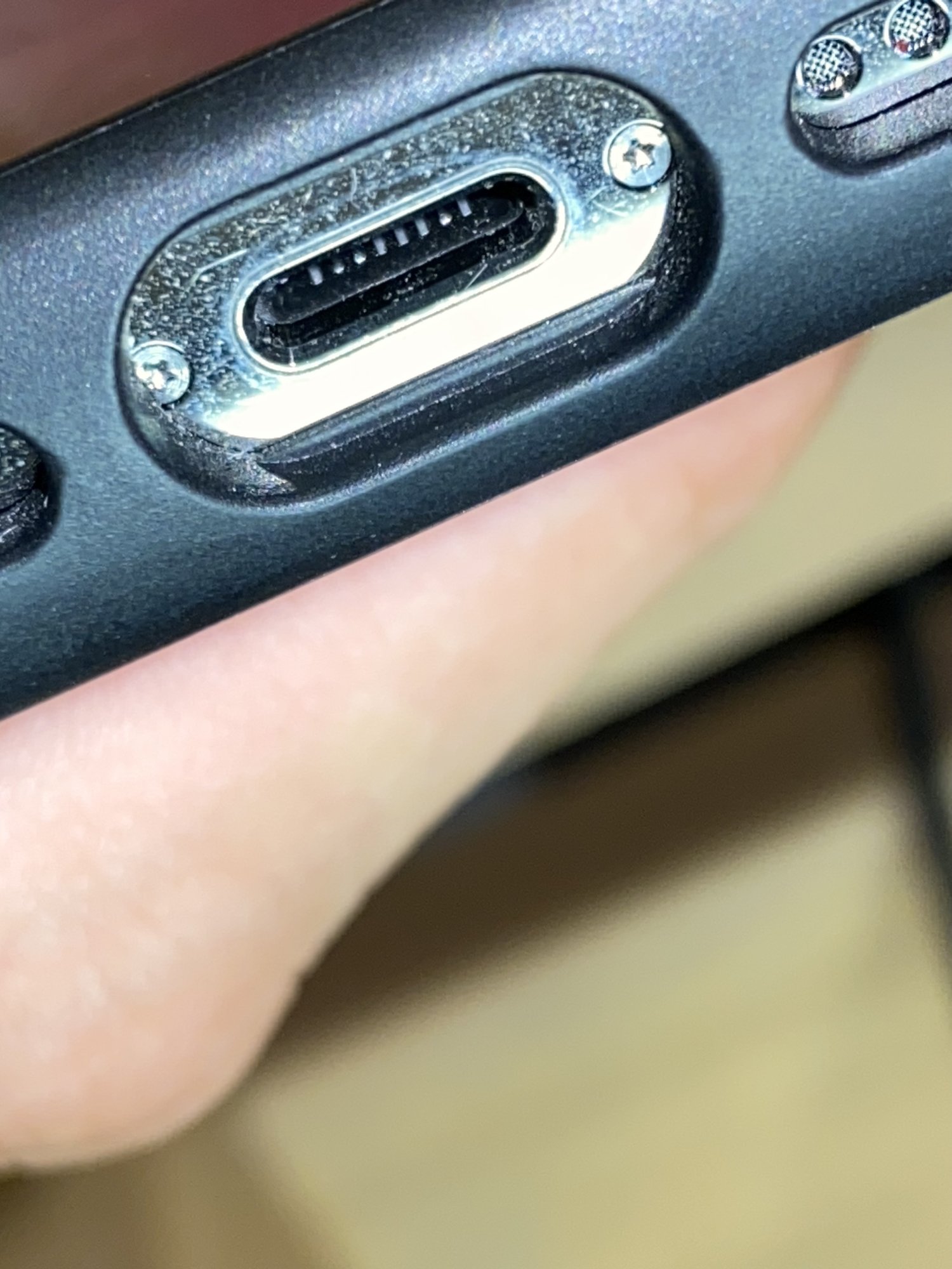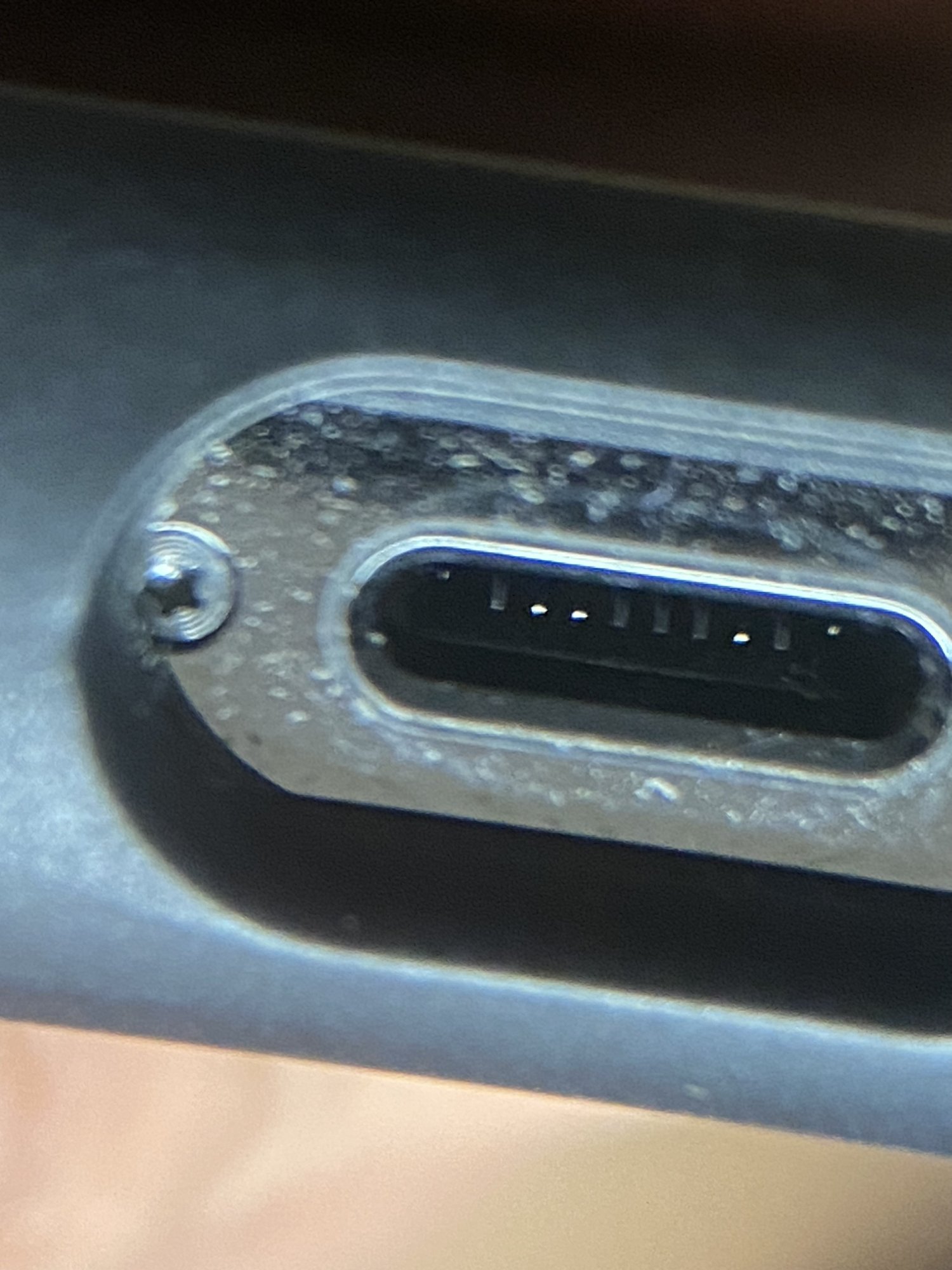 Third, the pins/contacts aren't just little flaps of bent metal they are like little wedges. They are relatively robust by consumer connector standards. As we've seen they are designed to last the useable life of the device plus some. Excuse the photo quality this was more difficult to get a good picture of than I would have thought but this is my iPhone 11 PM so you can see what "little wedges" I'm referring to.