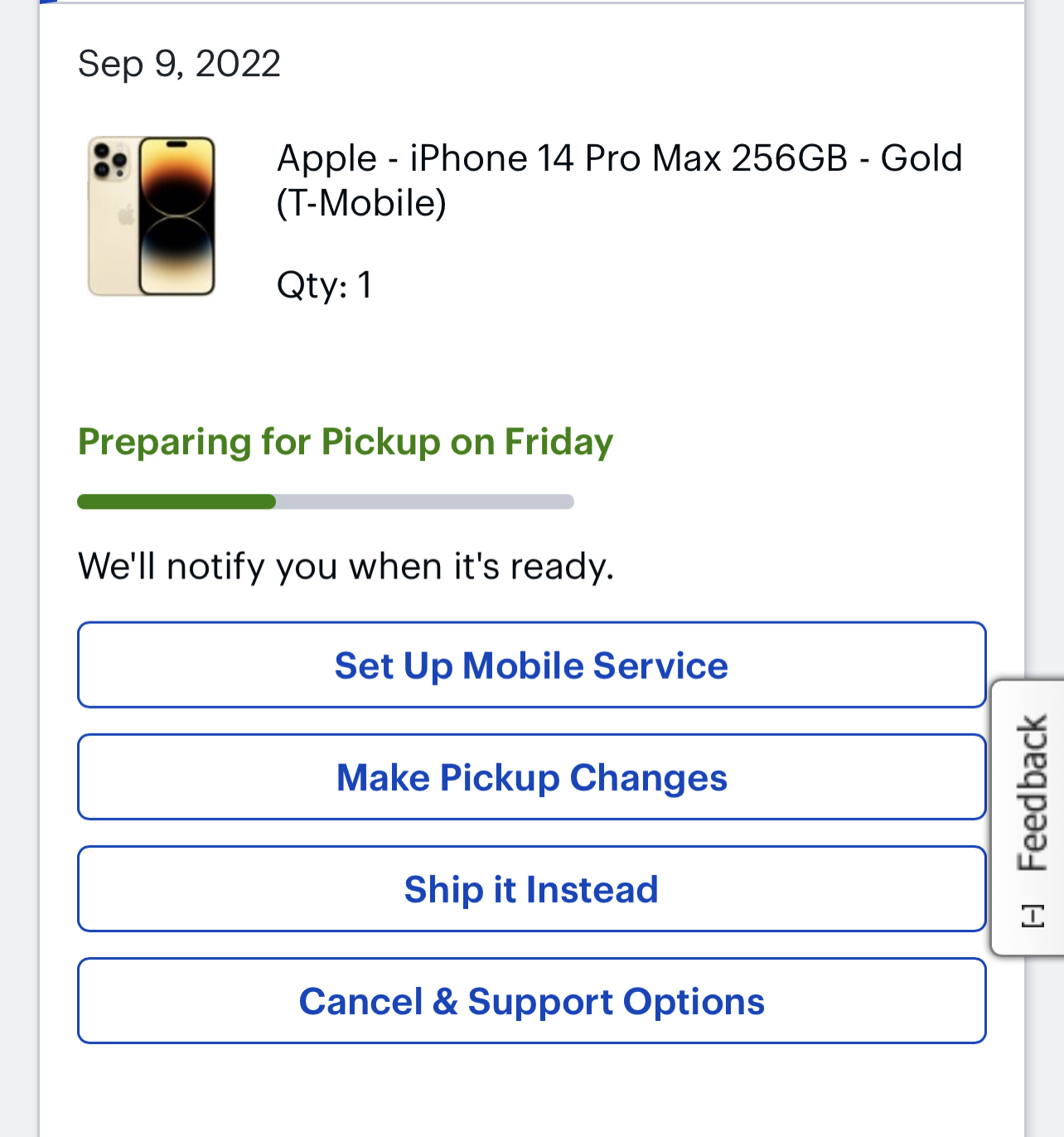 Yeah, I’m being cautiously optimistic! Last year was a mess (idk why went back for more). I never got to the “Preparing for Pickup” stage. The Saturday after release day, it changed to “delayed”… I finally canceled it the following week; I eventually got my phone about two weeks later.I hope that ends up true for you. From everything I can find your lucky if it holds true and it’s really a toss up until you have the phone I’m your hand. Everything from broken promises to people getting notified that it’s ready for pick up, going to the store and it not actually ready for pick up.