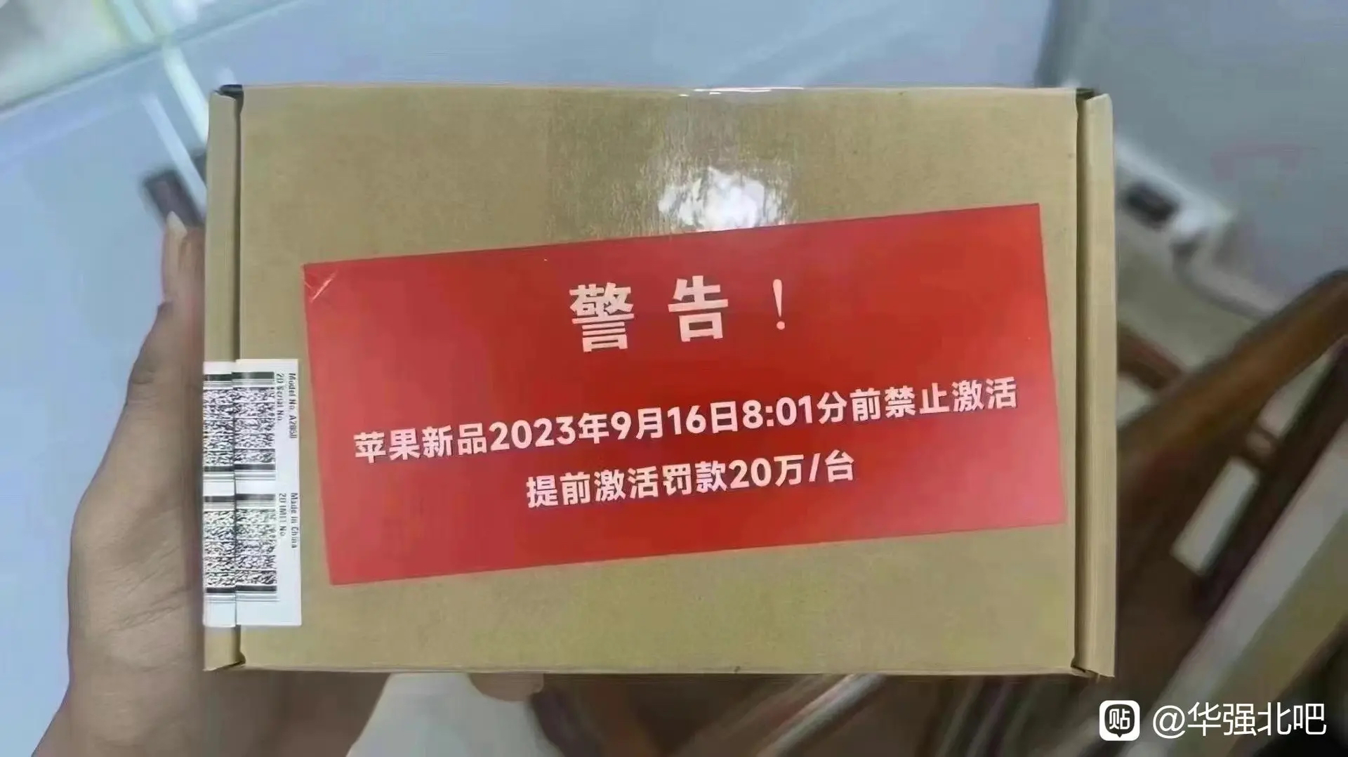 It reads "Warning! No activation until 8:01 am on September 16 (UTC+8) for this new Apple product. Earlier activation fined for ¥200 thousand per phone."Not sure if these are real