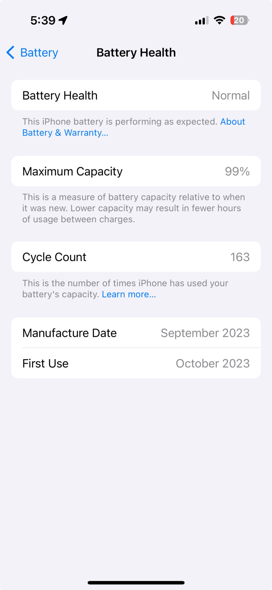 I have other devices so that's probably why the cycle count is low-ish - battery usage is spread out across them all.