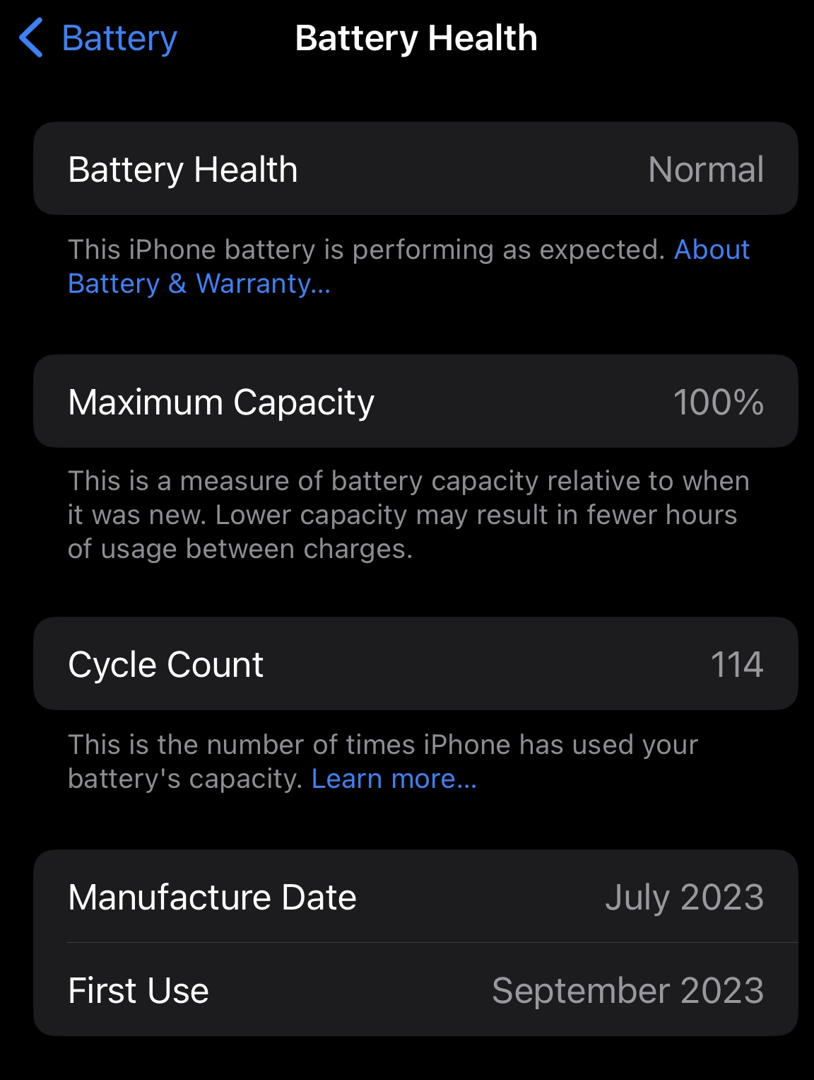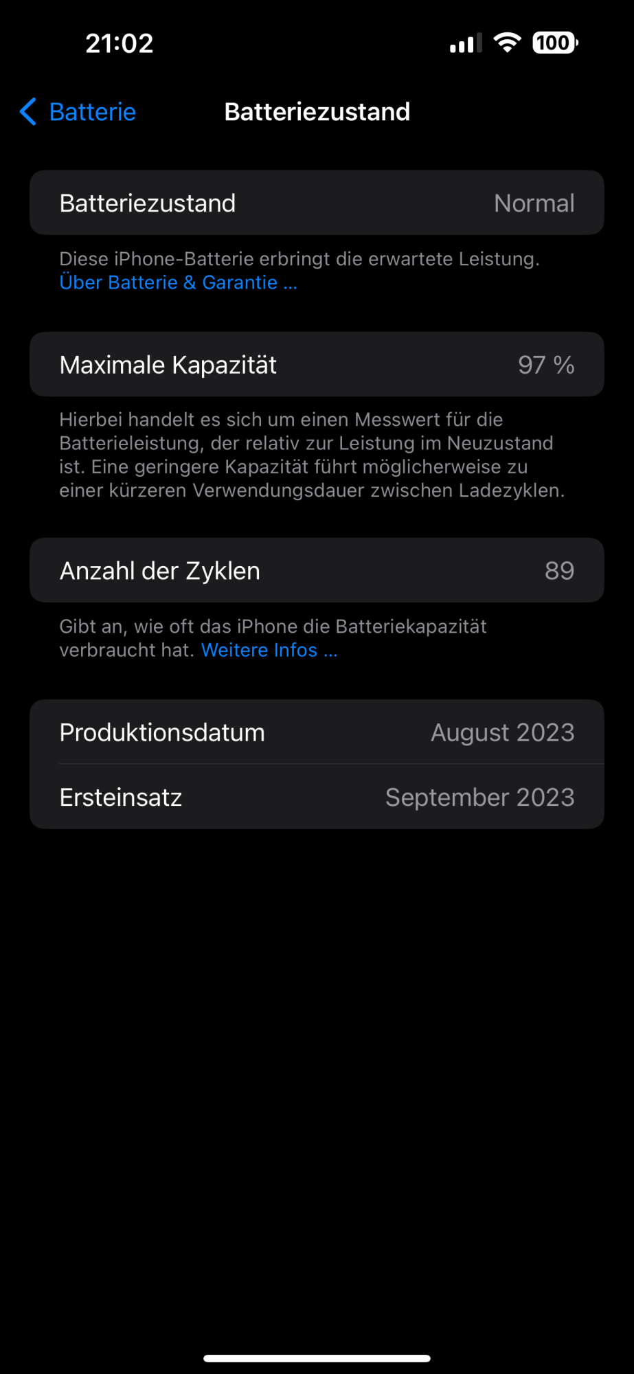 Is that 89 cycles? Doesn't seem like you should be down to 97% health with only 89 cycles.View attachment 2361219Launch day 15 Pro. Max