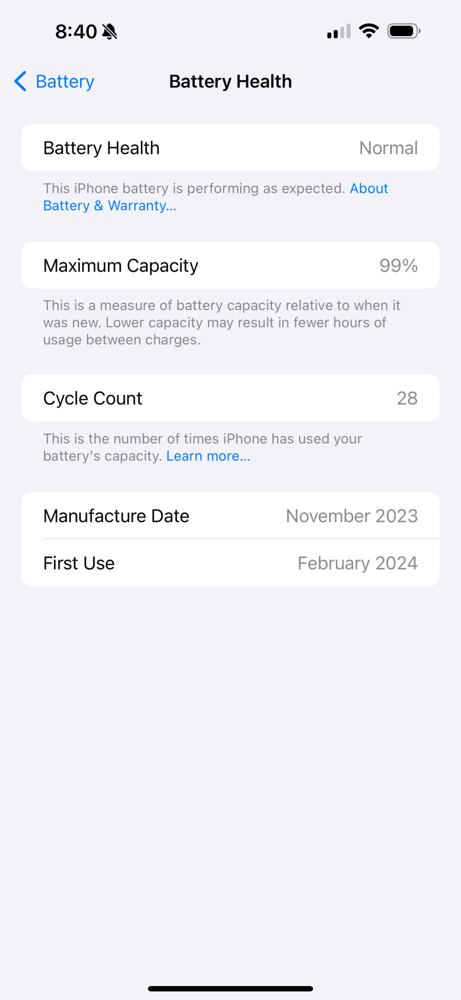 Not normal... you should still be at 100% with only 28 cycles regardless of your charging habits.Does this seem normal? I charge every night. View attachment 2362461