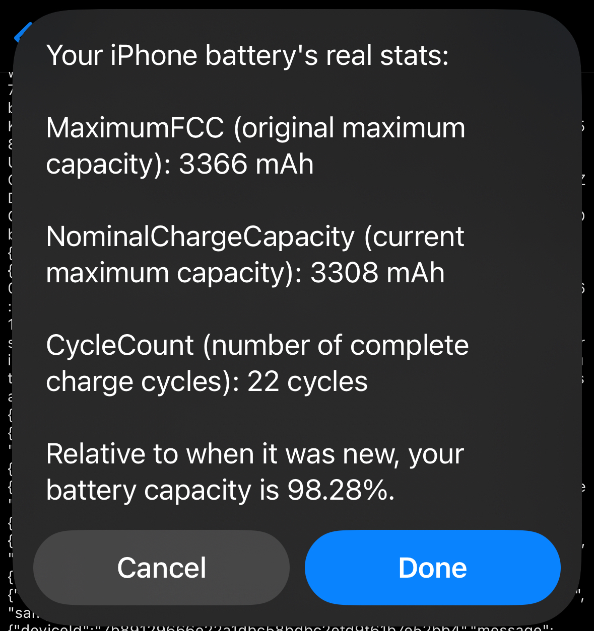 Yep. My 15 Pro battery had an original capacity of 3366 mAh from the factory and will likely be at 100% in the battery settings for some time.I think it has to do with the initial capacity.