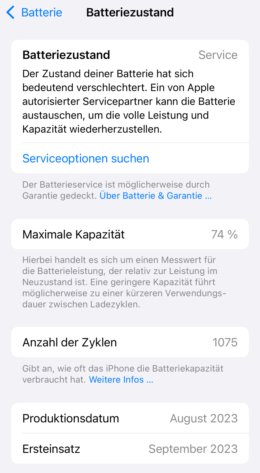Have you, @BelgianChoklit, (re)calibrated your iPhone’s battery (recently)?I will be upgrading next month and from the looks of this, my battery will not hit 79%. I’ll just be glad to trade this 15PM into Apple for a 17PM which will hopefully have a better battery life.