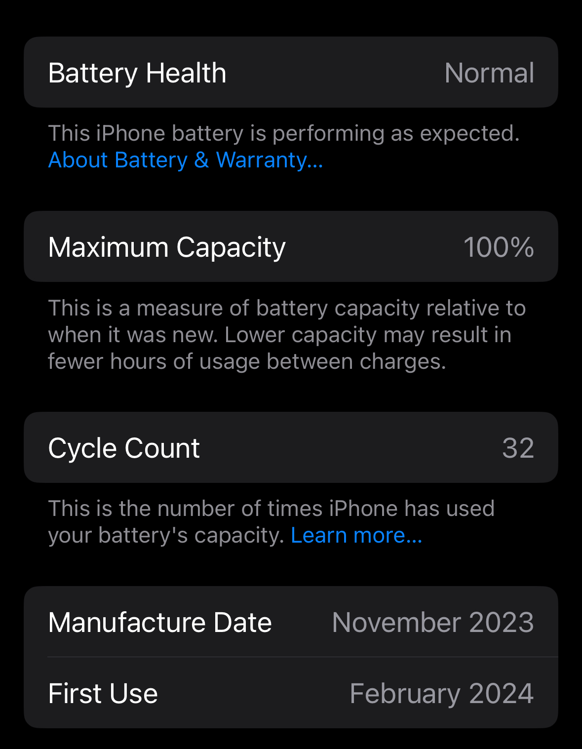 Where did you find the stats on the first picture? Is it a new feature in iOS 17.5 beta or an app?15 Pro on iOS 17.5 beta and 80% charge limit. There’s been some drops in the battery real stats from analytics.