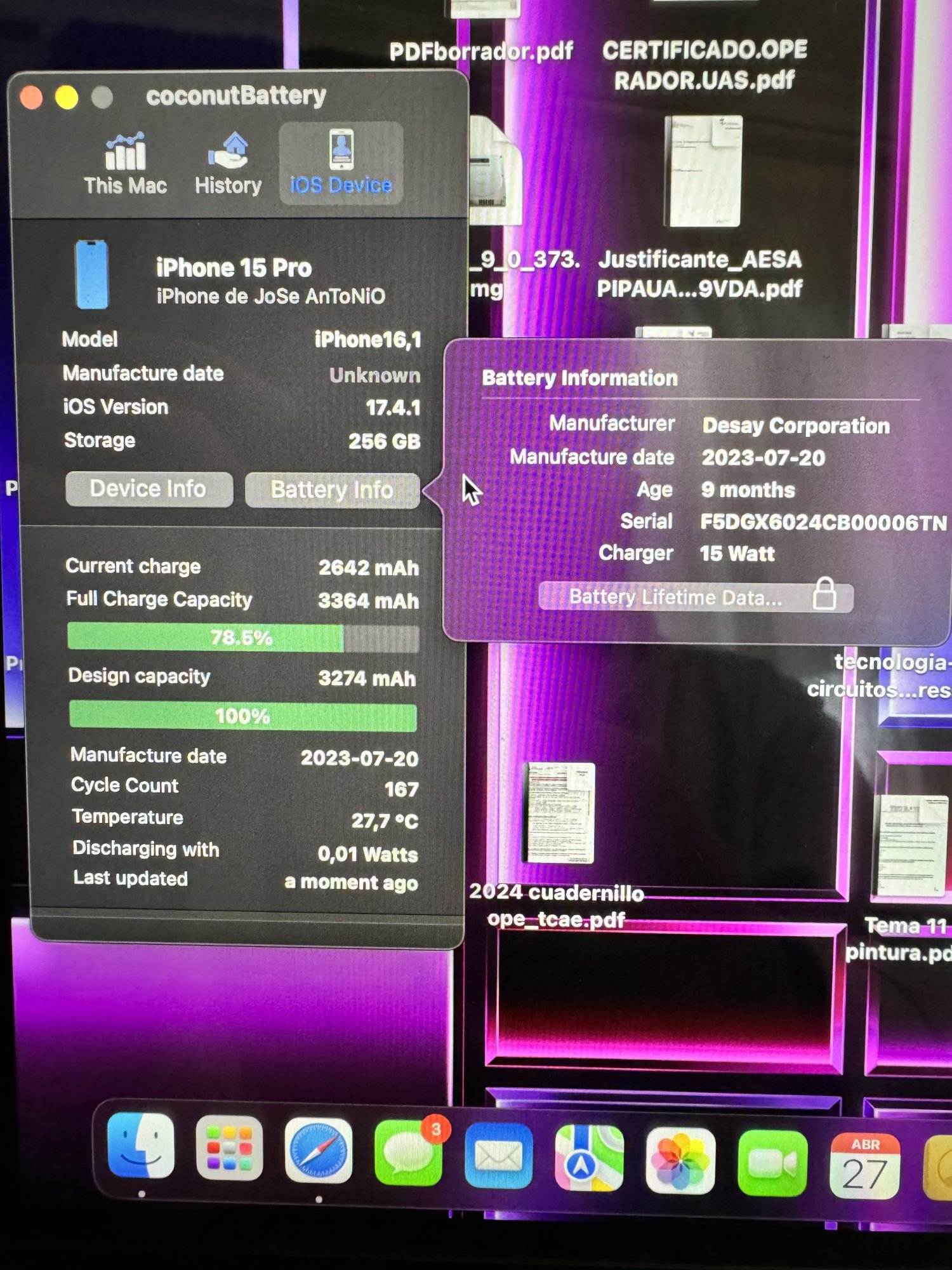 Look at an analytics log, such as the partial one I included in post #168. And even with monitoring and considering those vast number of factors, it’s impossible to perfectly measure a battery’s state of charge. So, you can probably understand why predicting an unusable state or failure is going to be nowhere near consistent/accurate — well, this applies to a lot or most technology but anyway. Speaking of accuracies… coconutBattery is a useful troubleshooting tool, at times, but it’s only fetching data for that moment — which, as was just noted, varies frequently. While still a guesstimate, the iOS/iPadOS/macOS/etc battery health calculations are still going to be reference because they account for a past data as well.