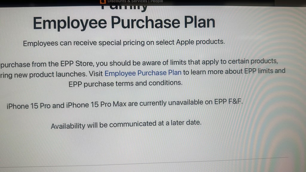 Just wanted to say a big thank you and also help confirm that the Friends and Family discount is now active on the iPhone 15 Pro! Was able to order it for same day in store pickup in California!
