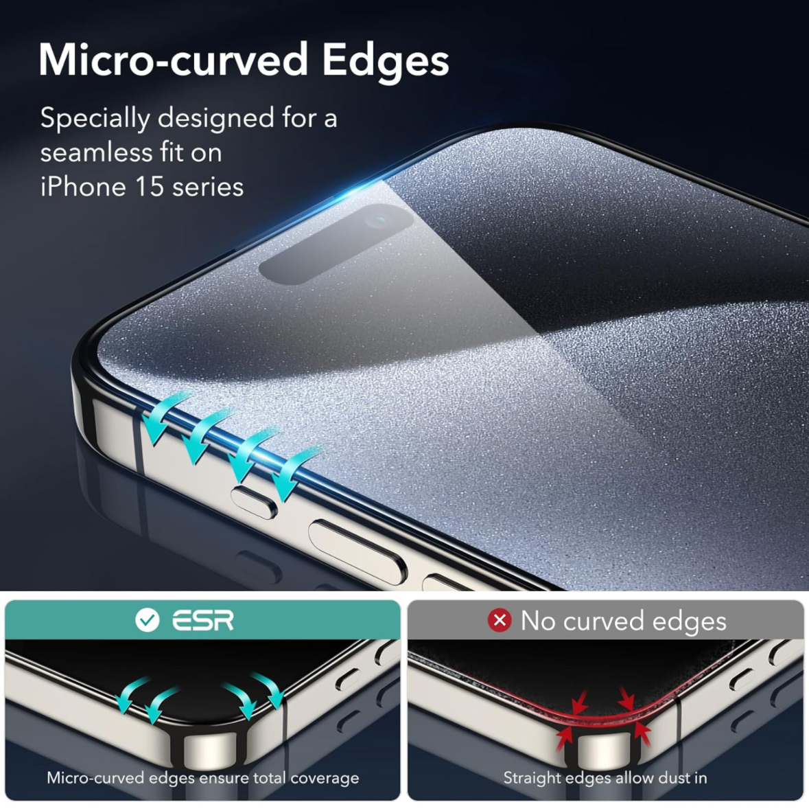 The Torras Diamond Shield I have on my 15 PM right now definitely has the curved edges.Torras does not have this curve. ESR does. I’ve used both.