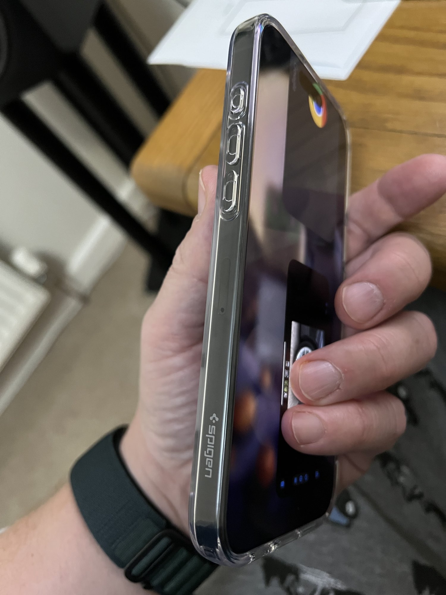 Try exchanging the Apple case. Sometimes there are very small variations causing a corner to be loose.I purchased the Apple silicone for my 16PM because of the camera button. It’s a good case and provides a good feel in the hand. But the phone keeps popping out of the case very slightly fin the bottom left corner. I’m planning on keeping it.