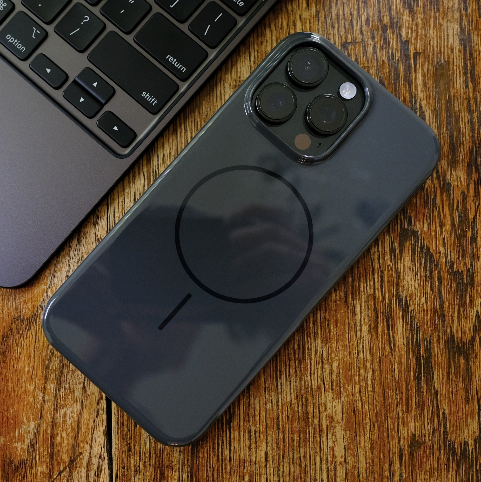 I’ll probably keep it and add it to the rotation. I love the dark gray, which matches perfectly with the black titanium. The buttons and the camera control are perfect, which is the major selling point. The fingerprints may get annoying, but as mentioned, they wipe off easily, so not as bad as on TPU or aramid fiber. Always tradeoffs…