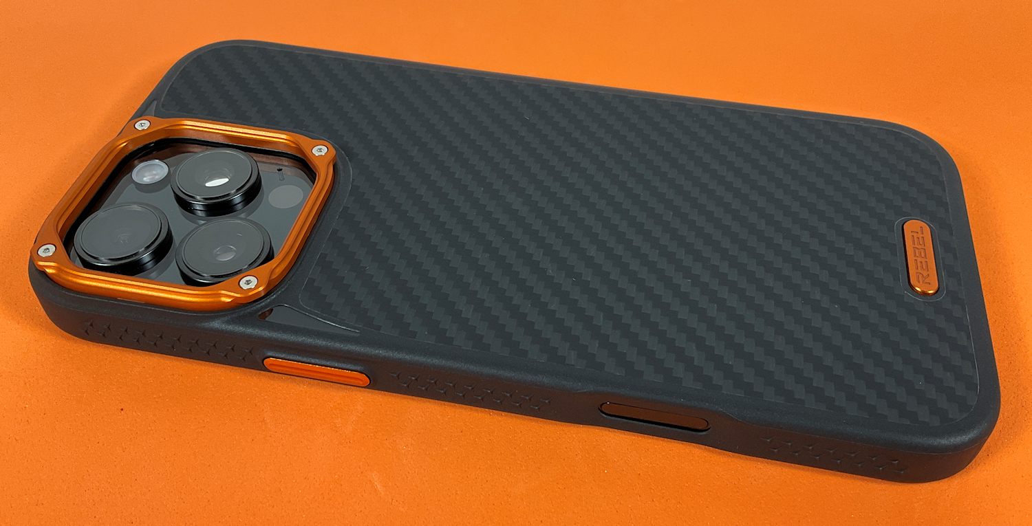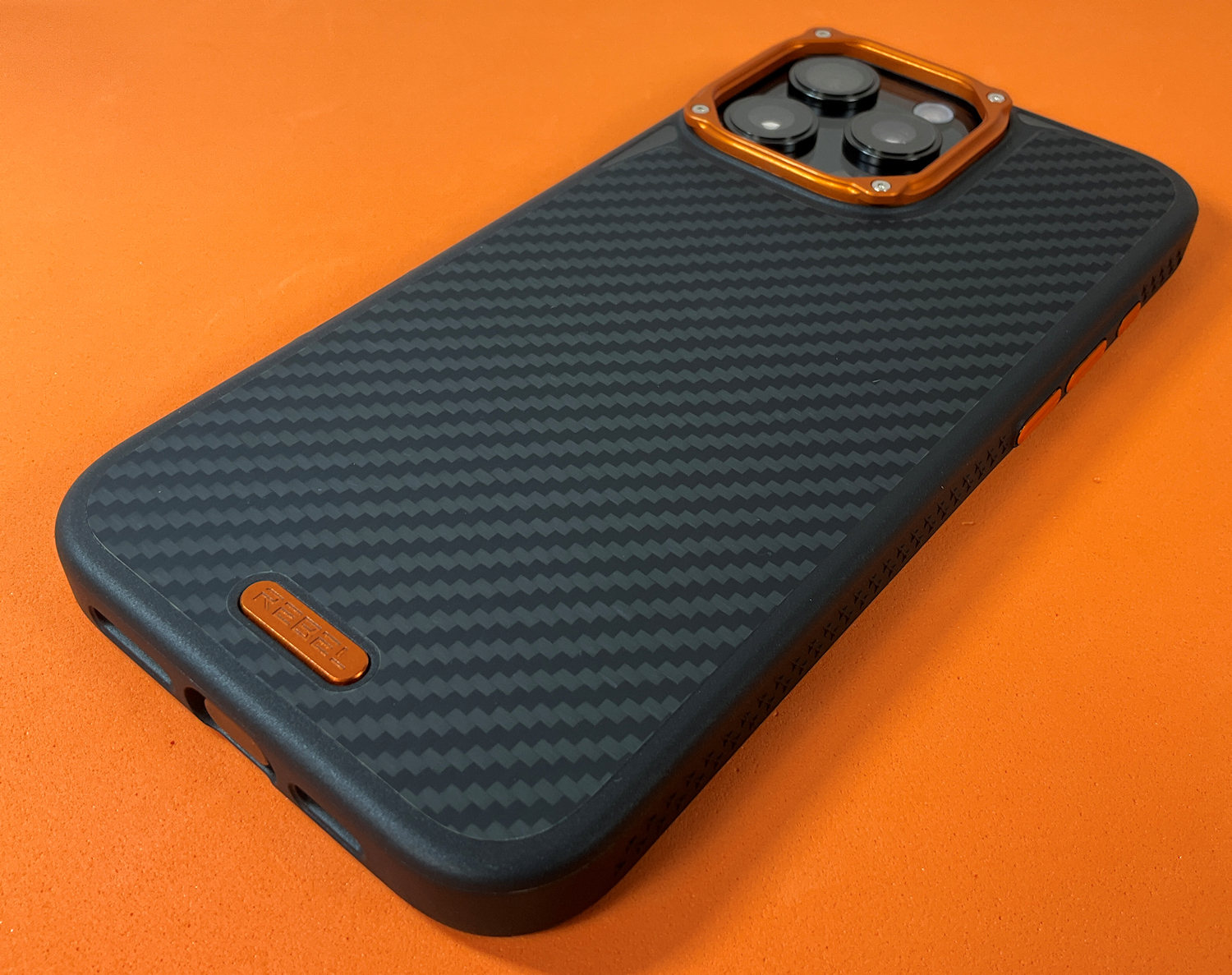 Phone Rebel Gen 6 Rebel case in today. Definitely not slippery like the frosty but not as grippy as last years rebel case. Everything about this case screams high quality and IMO the best rebel case made to date. Out of the box with the stock hardware it weights 54 grams, 55 grams with the large honking orange camera ring. One thing I noticed is the interior part where the camera ring screws into is a separate removable piece now and not actually molded into the case anymore. The Magsafe is strong, that large camera ring is what threw off Tee's Magsafe test with his base.
